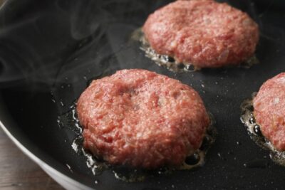 フライパンが十分に温まっていない状態でハンバーグを置くと、表面が固まる前にタンパク質が張り付き、くっつきやすくなります。